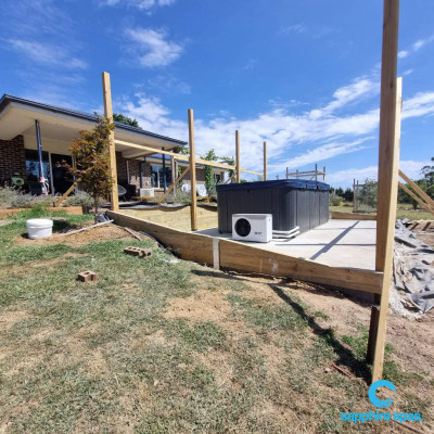 swim spa slab has been extended to provide stable base for heap pump